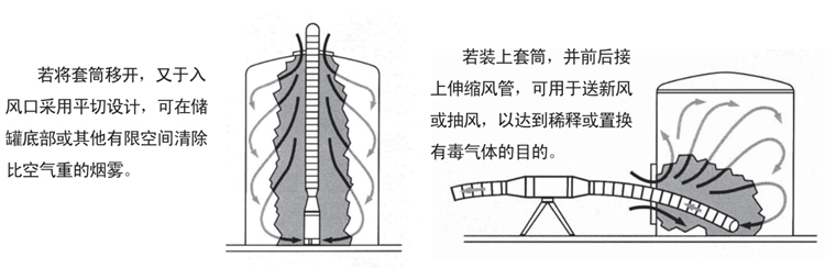 3、適用于油槽、加工槽、油罐車、人孔及其他有限空間通風(fēng)換氣。